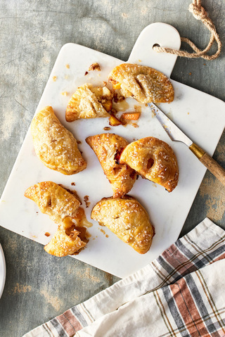 Just before baking, vent pies with a sharp knife, brush lightly with egg wash, and sprinkle with sugar. Bake for 20-25 minutes, or until golden brown on top and bottom. Cool pies on baking sheets for 2 minutes, then transfer to wire racks to cool completely.