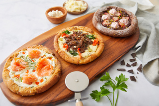 Indulge your guests in the high-end experience of an omakase pizza flight and take them on a unique tasting adventure. From the creamy, luxurious flavor of Salmon Crudo Pizza to the hearty tanginess of Short Rib Pizza and the rich elegance of Neapolitan Chocolate Pizza—this expertly crafted flight is designed to delight!