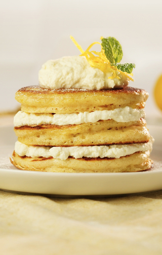 Stack pancakes on a plate, layering a few tablespoons of reserved sweetened Ricotta mixture in between each pancake.